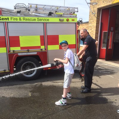 Jamie having a go at the fire brigade hoses.