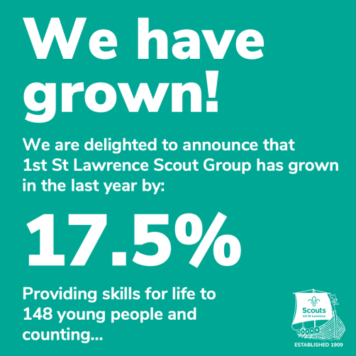 We have grown! Published on February 8, 2020 by 1ststlawrence 1st St Lawrence Scout Group has grown by 17.5% in the last year! Related