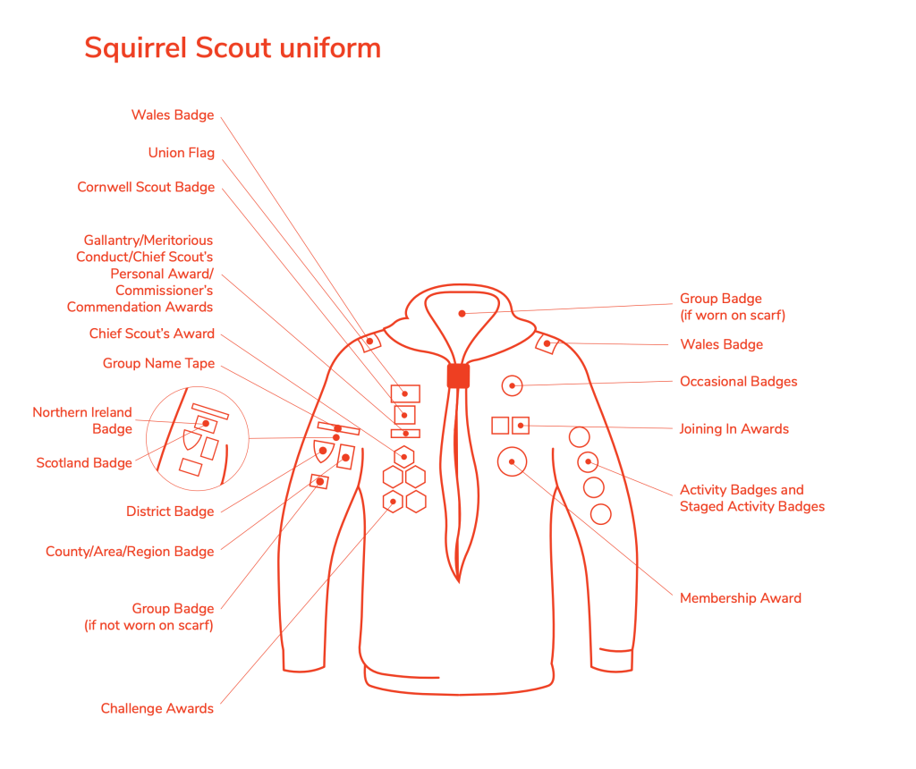 Squirrel Badge Positions This diagram shows where to place the Squirrel Scout badges and awards on the uniform:
